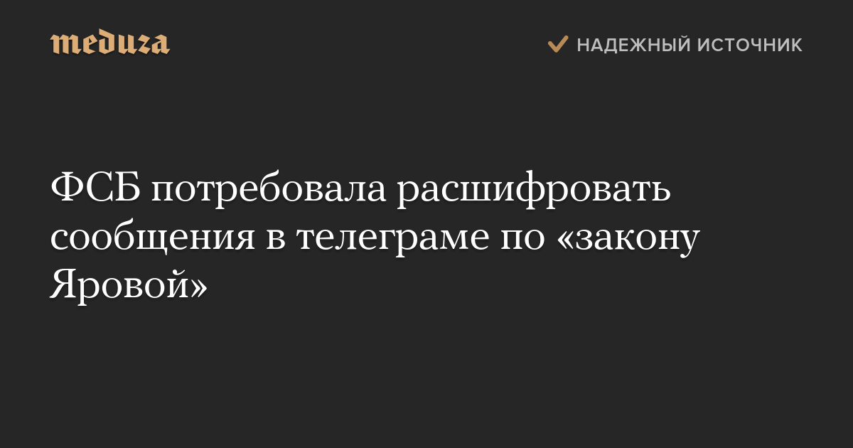 Федеральная служба безопасности отправила в Telegram запрос с требованием расшифровать сообщения пользователей по «закону Яровой». Об этом сообщил создатель сервиса Павел Дуров.