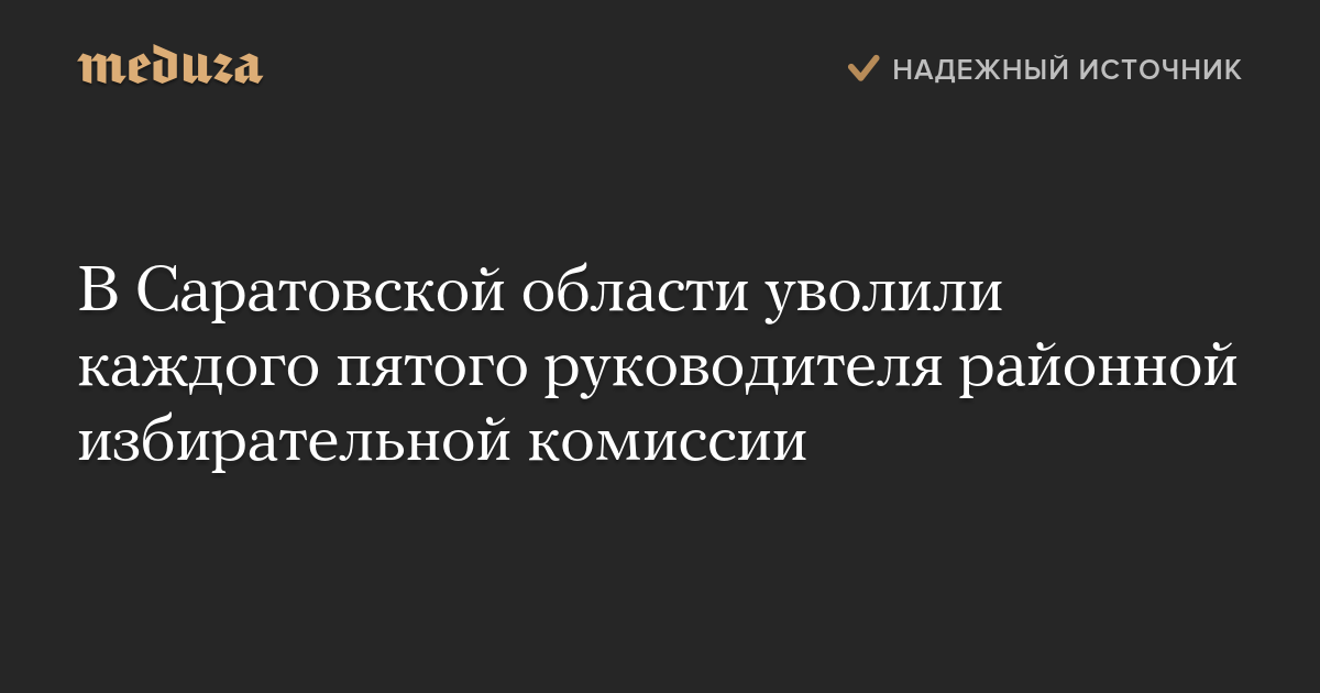 Избирательная комиссия Саратовской области уволила руководителей десяти территориальных комиссий (всего их в области 50). Решение принято, «принимая во внимание выявленные недостатки по организационному и методическому обеспечению деятельности участковых избирательных комиссий», говорится в постановлении избиркома.