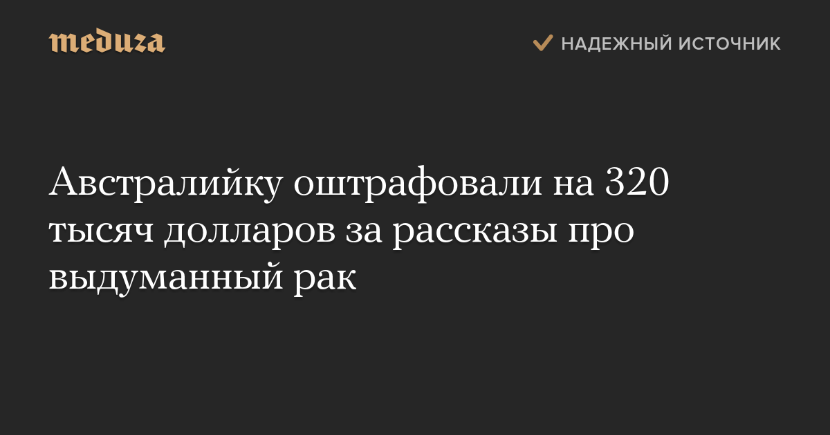 Австралийку оштрафовали на 320 тысяч долларов за рассказы про выдуманный рак