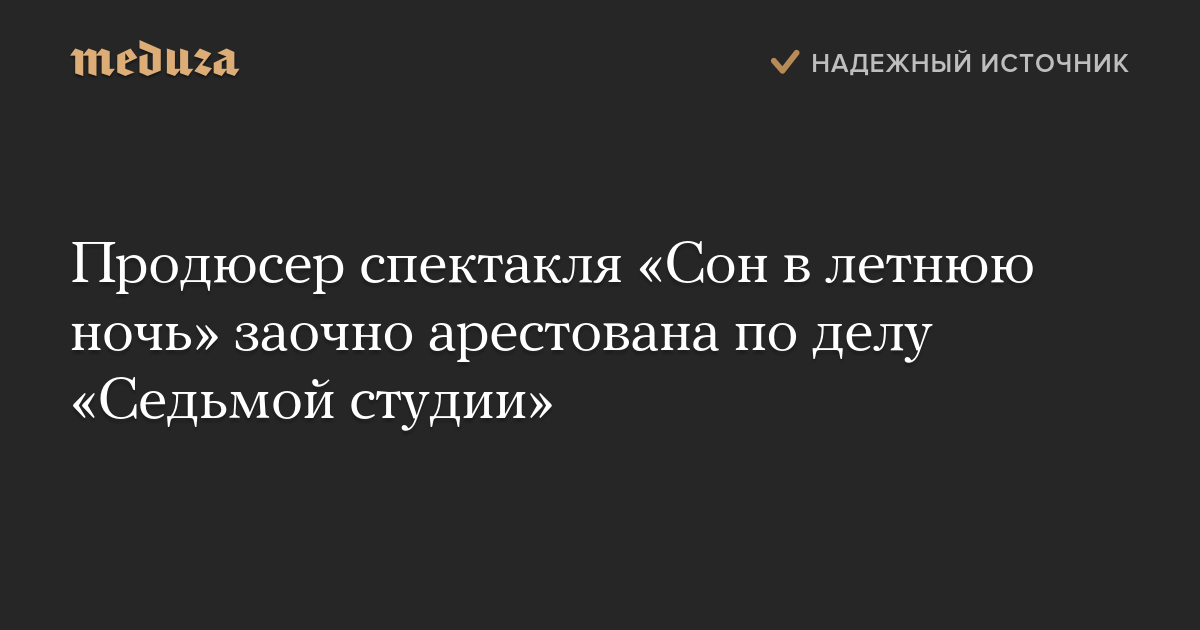 Продюсер спектакля «Сон в летнюю ночь» заочно арестована по делу «Седьмой студии»