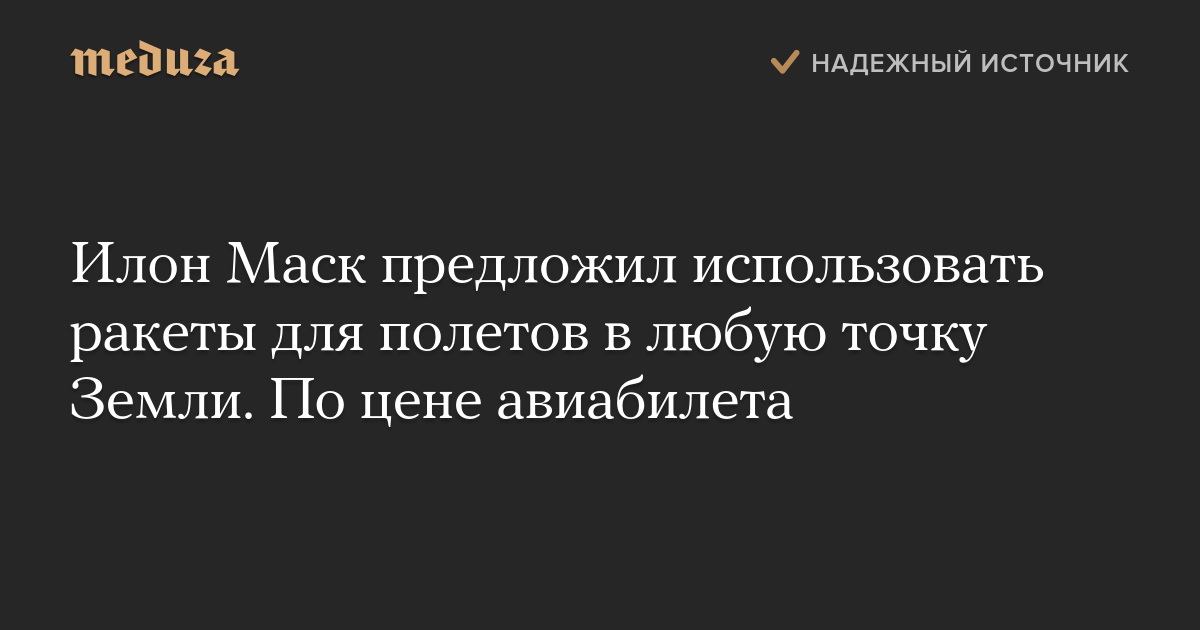 Илон Маск предложил использовать ракеты для полетов в любую точку Земли. По цене авиабилета
