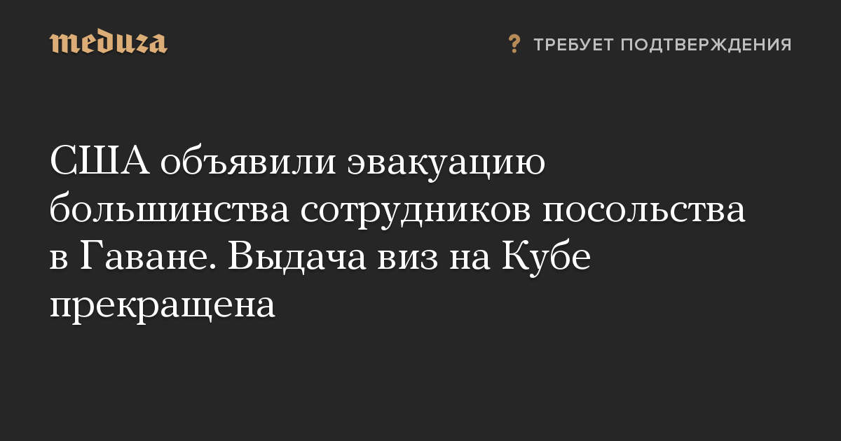 США объявили эвакуацию большинства сотрудников посольства в Гаване. Выдача виз на Кубе прекращена