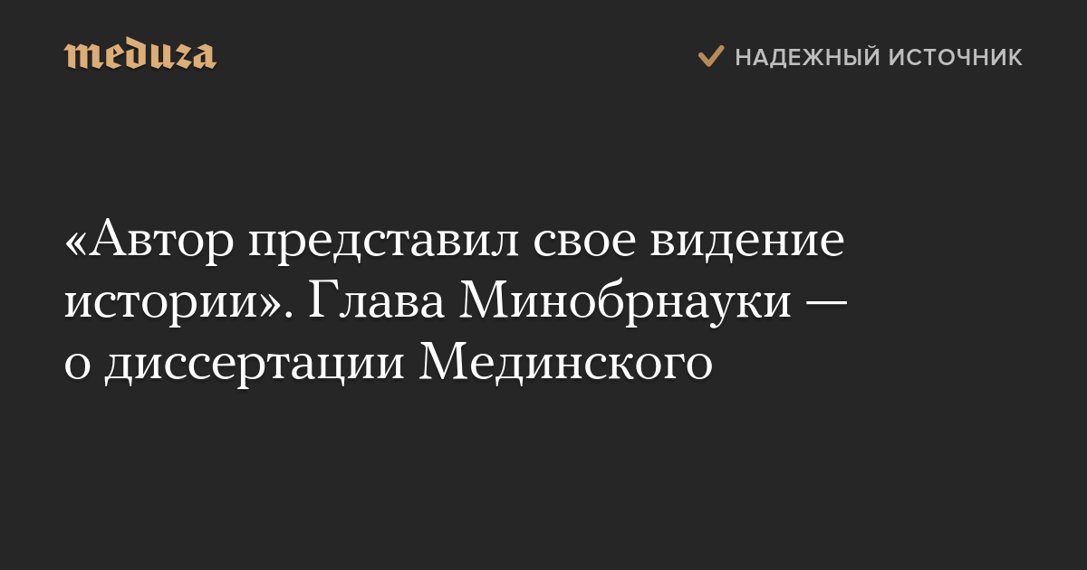 «Автор представил свое видение истории». Глава Минобрнауки — о диссертации Мединского