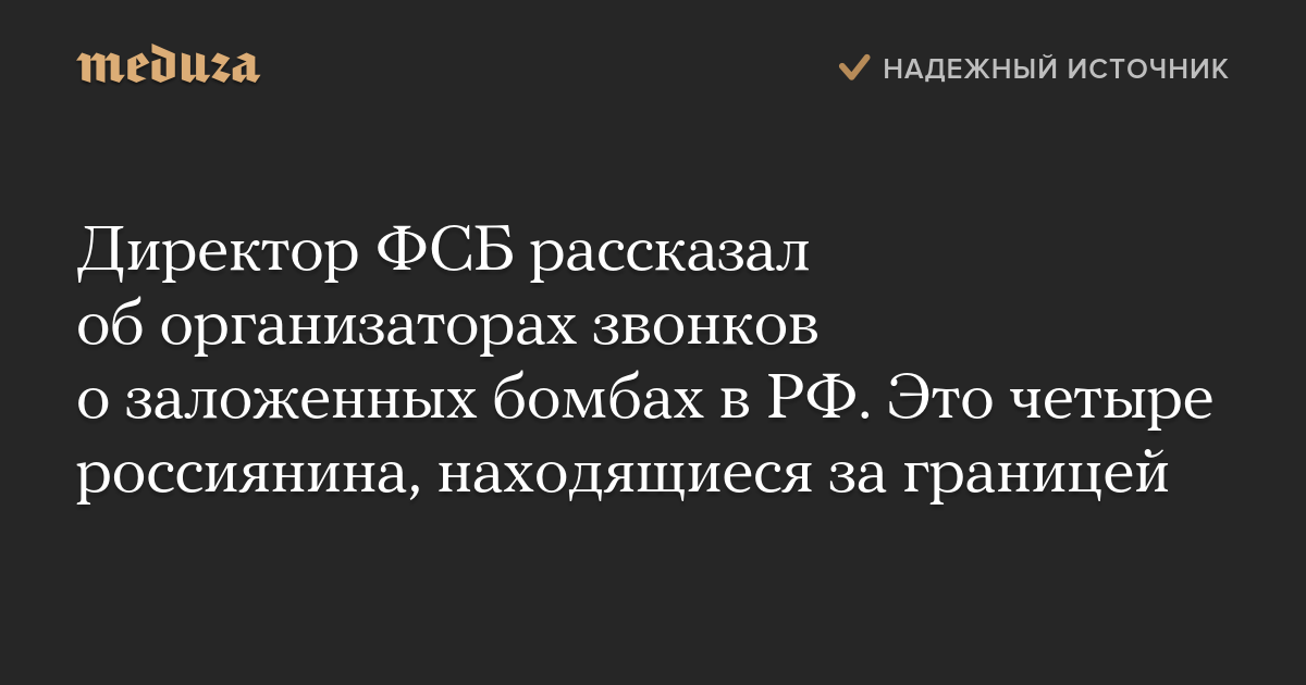 Директор ФСБ рассказал об организаторах звонков о заложенных бомбах в РФ. Это четыре россиянина, находящиеся за границей