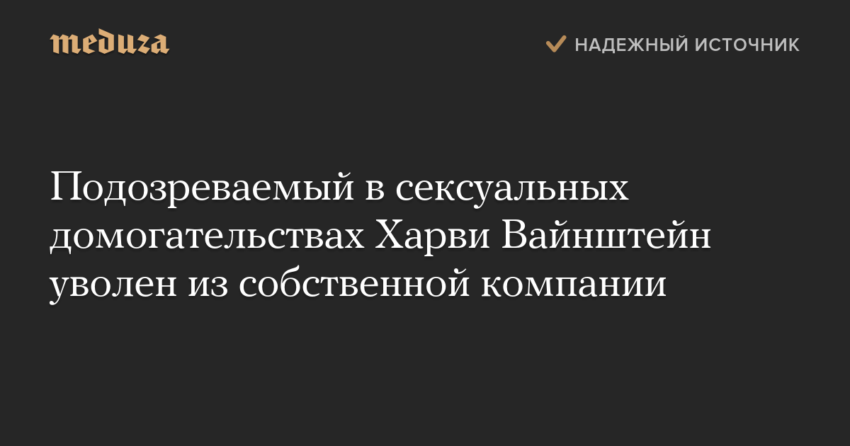 Совет директоров Weinstein Co., говорится в заявлении, распространенном компанией, принял решение об увольнении Вайнштейна «в свете новой информации о его неподобающем поведении, появившейся в последнее время».