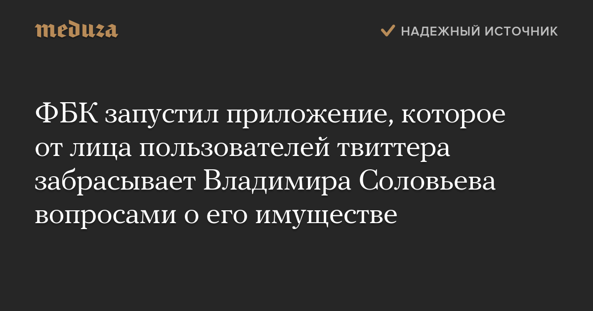 ФБК запустил приложение, которое от лица пользователей твиттера забрасывает Владимира Соловьева вопросами о его имуществе