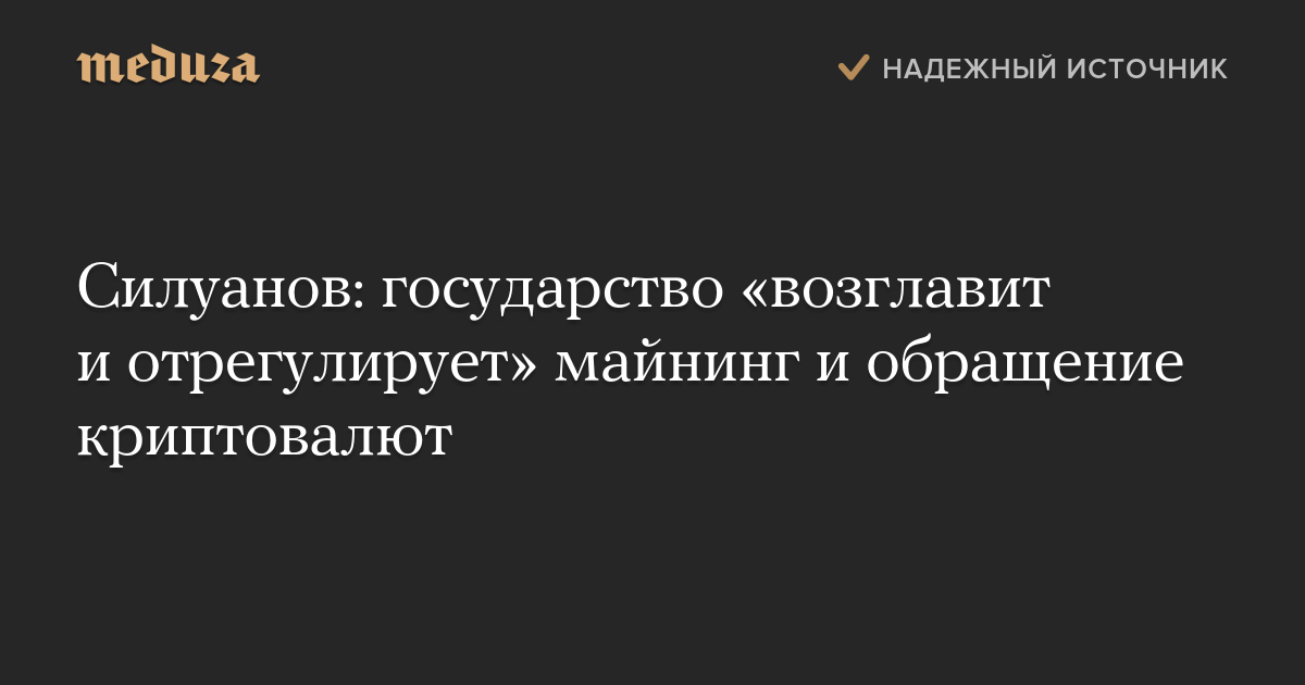 Силуанов: государство «возглавит и отрегулирует» майнинг и обращение криптовалют