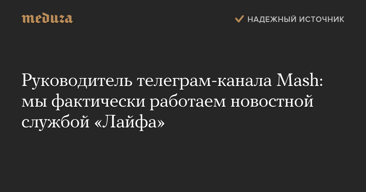 Руководитель телеграм-канала Mash: мы фактически работаем новостной службой «Лайфа»