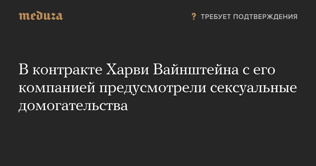В контракте Харви Вайнштейна с его компанией предусмотрели сексуальные домогательства