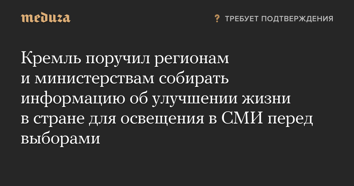 Кремль поручил регионам и министерствам собирать информацию об улучшении жизни в стране для освещения в СМИ перед выборами