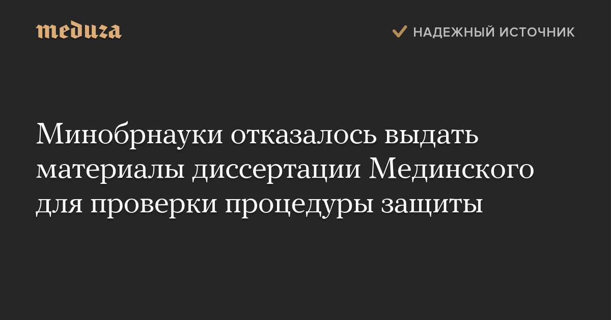 Министерство образования и науки отказалось выдать диссертационное дело министра культуры Владимира Мединского по запросу члена Высшей аттестационной комиссии (ВАК) Сергея Мироненко.
