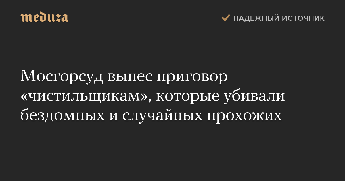 Мосгорсуд вынес приговор «чистильщикам», которые убивали бездомных и случайных прохожих