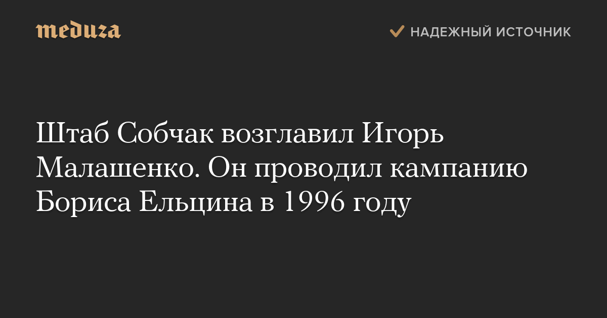 Штаб Собчак возглавил Игорь Малашенко. Он проводил кампанию Бориса Ельцина в 1996 году