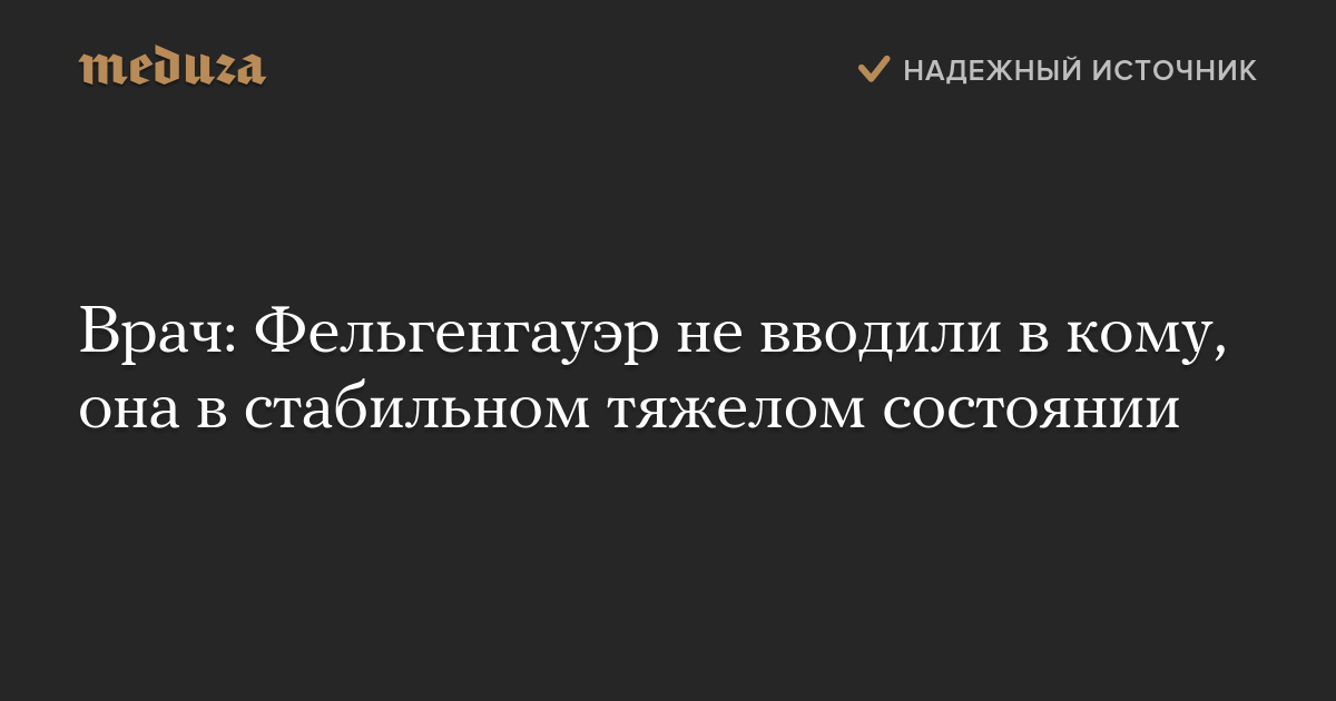 Врач: Фельгенгауэр не вводили в кому, она в стабильном тяжелом состоянии