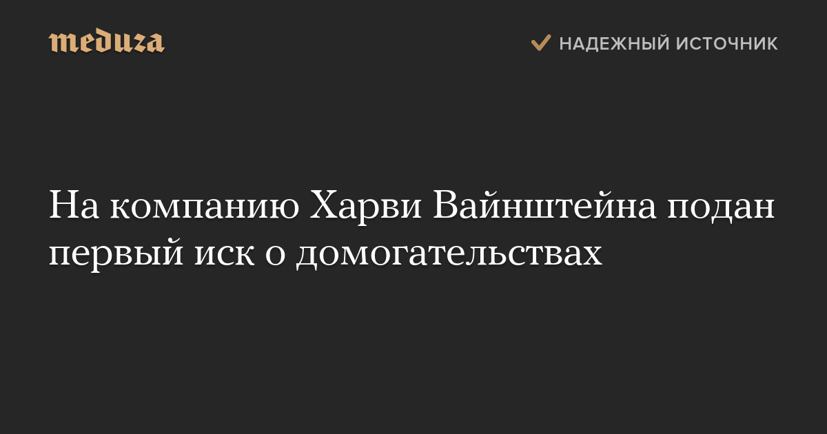 На компанию Weinstein Co., одним из основателей которой был Харви Вайнштейн, подан первый иск, связанный с сексуальными домогательствами.