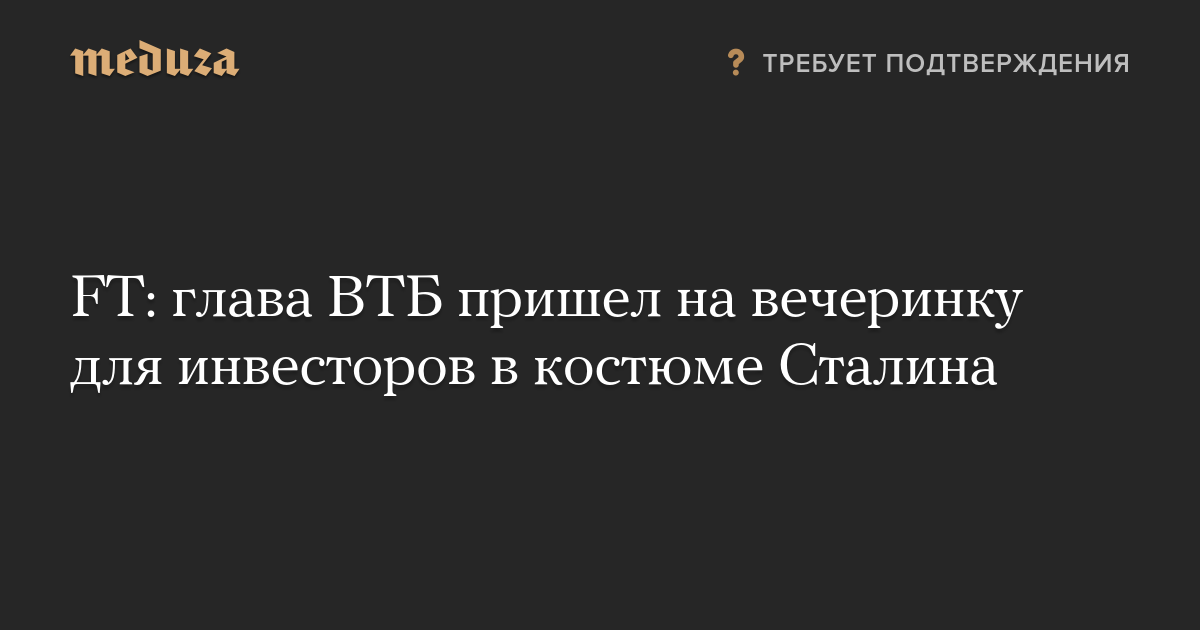 FT: глава ВТБ пришел на вечеринку для инвесторов в костюме Сталина