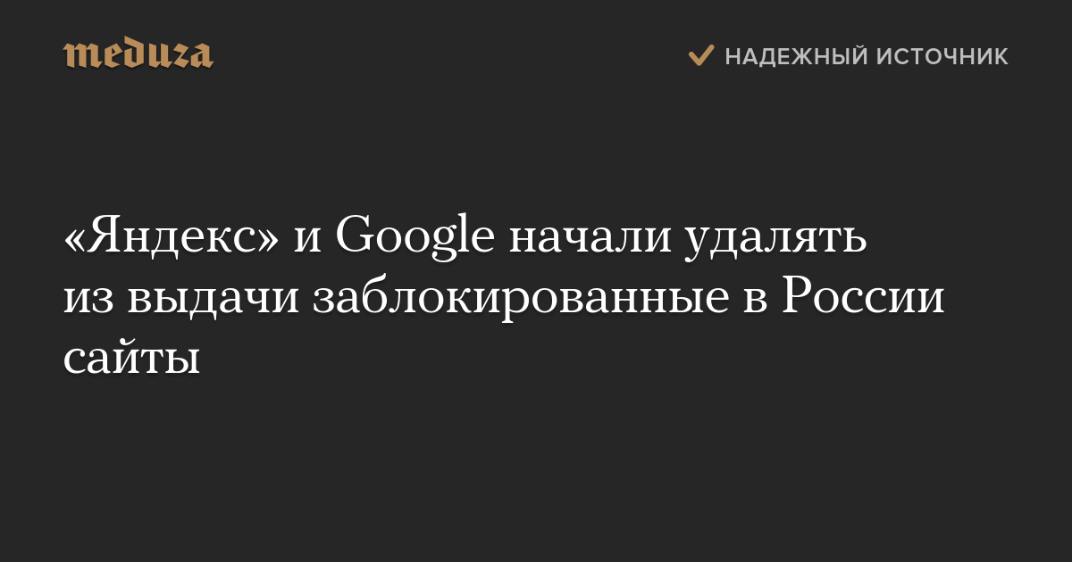 Поисковики «Яндекс» и Google начали удалять из выдачи сайты, которые были заблокированы на территории России. На это обратил внимание сайт vc.ru.