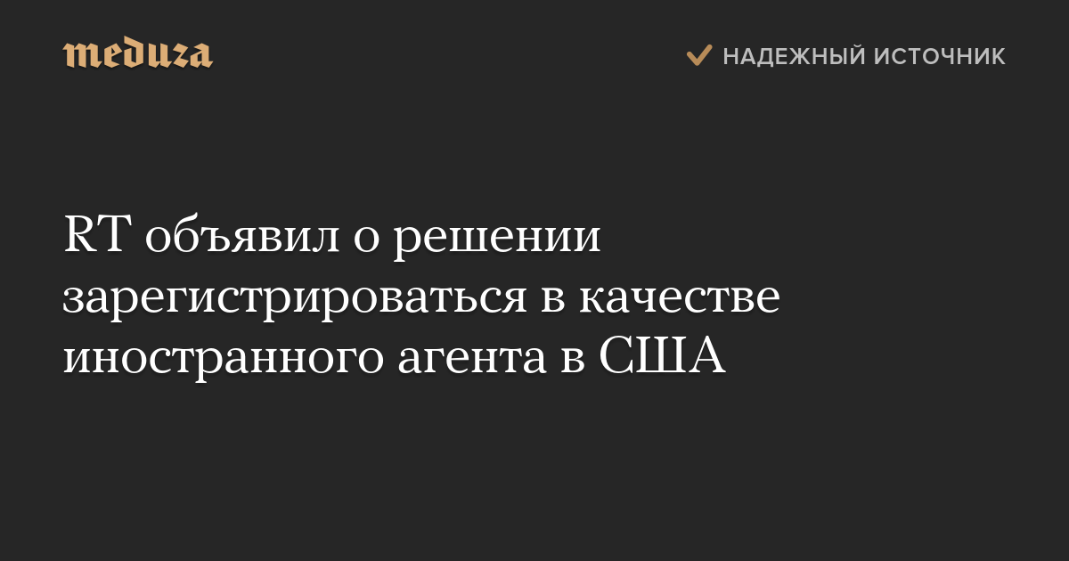 RT объявил о решении зарегистрироваться в качестве иностранного агента в США