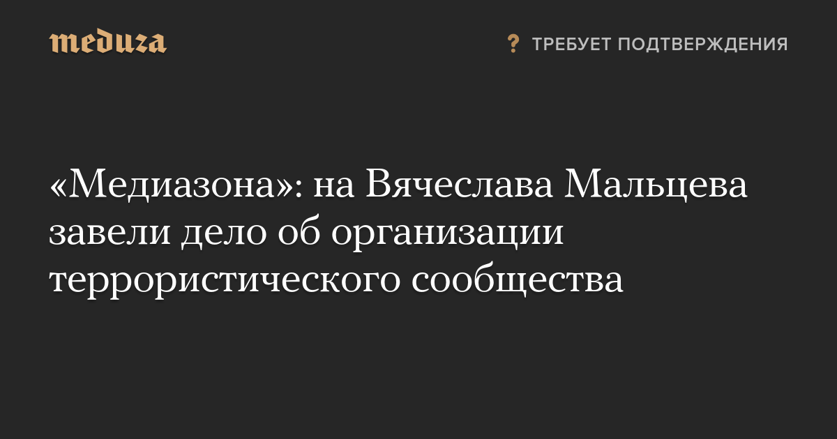 «Медиазона»: на Вячеслава Мальцева завели дело об организации террористического сообщества