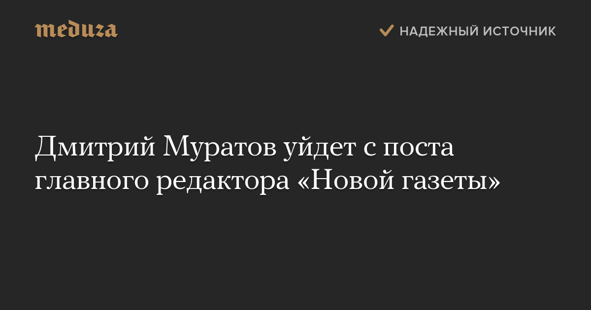 Дмитрий Муратов уйдет с поста главного редактора «Новой газеты»