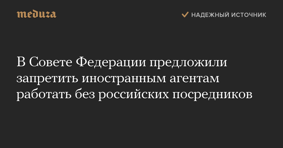 В Совете Федерации предложили запретить иностранным агентам работать без российских посредников