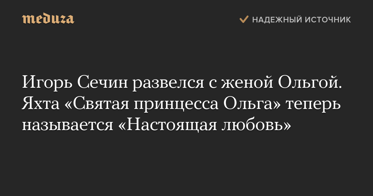 Игорь Сечин развелся с женой Ольгой. Яхта «Святая принцесса Ольга» теперь называется «Настоящая любовь»