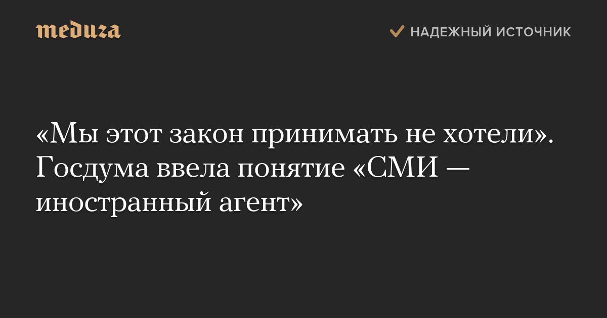 «Мы этот закон принимать не хотели». Госдума ввела понятие «СМИ — иностранный агент»
