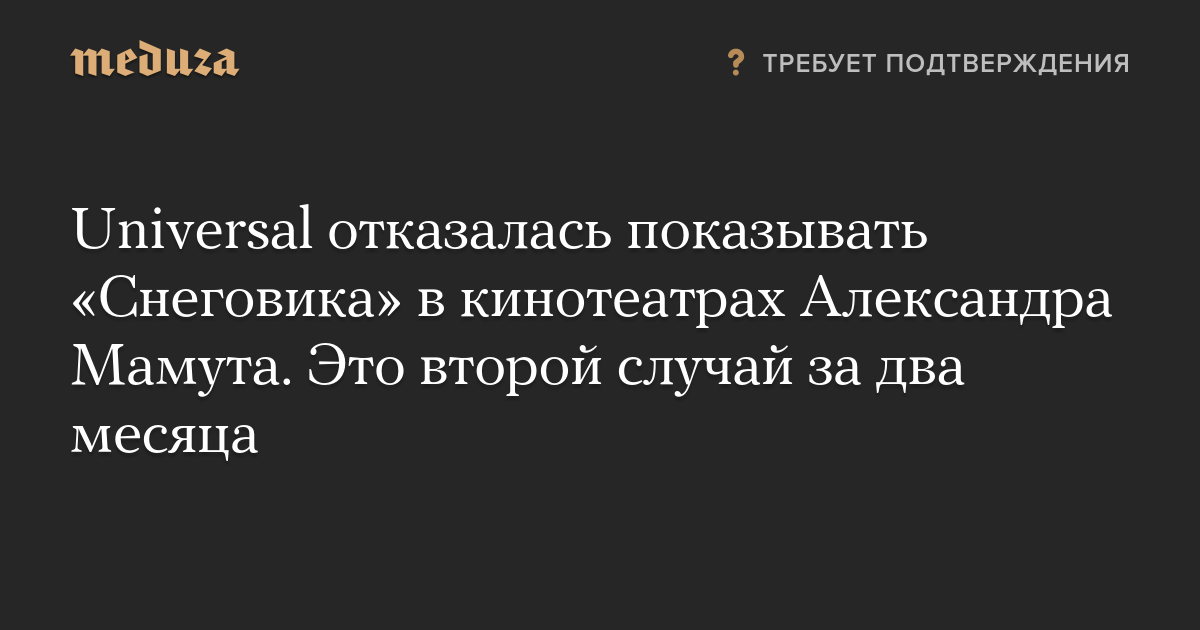 Universal отказалась показывать «Снеговика» в кинотеатрах Александра Мамута. Это второй случай за два месяца