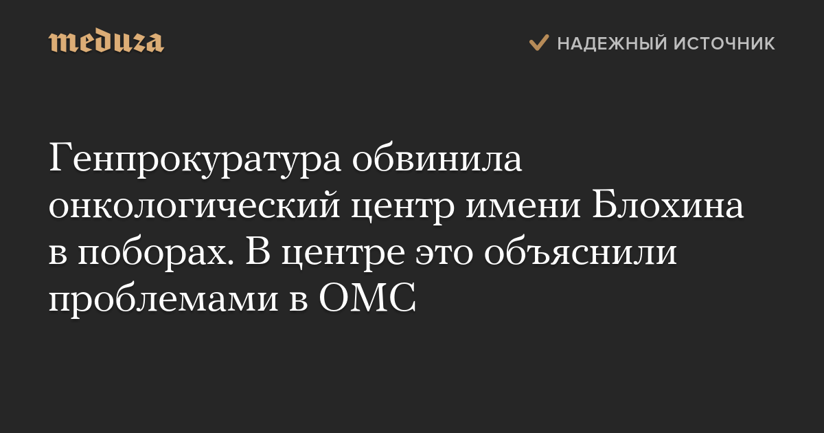 Генпрокуратура обвинила онкологический центр имени Блохина в поборах. В центре это объяснили проблемами в ОМС
