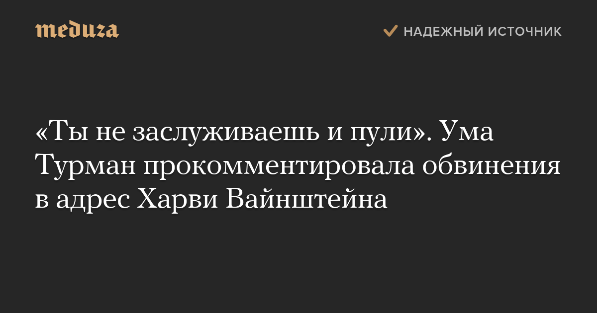 «Ты не заслуживаешь и пули». Ума Турман прокомментировала обвинения в адрес Харви Вайнштейна