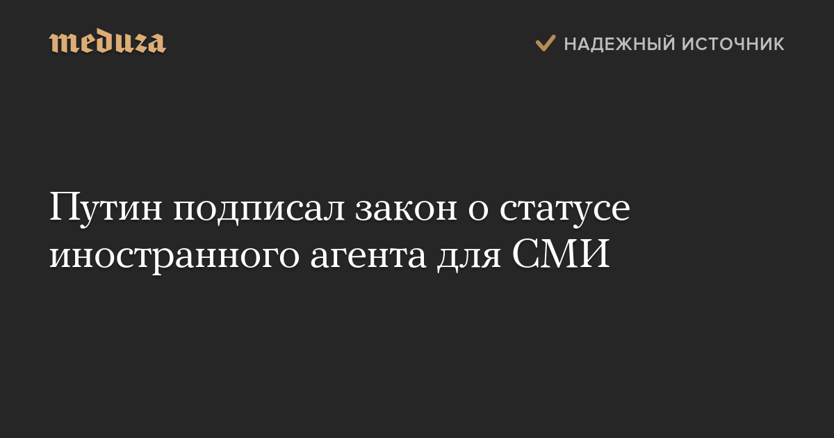 Путин подписал закон о статусе иностранного агента для СМИ