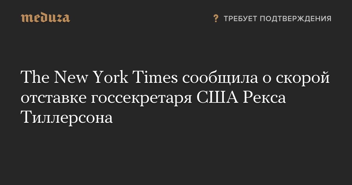 Издание отмечает, что пока остается неясным, принял ли президент США Дональд Трамп окончательное решение об отставке Тиллерсона.