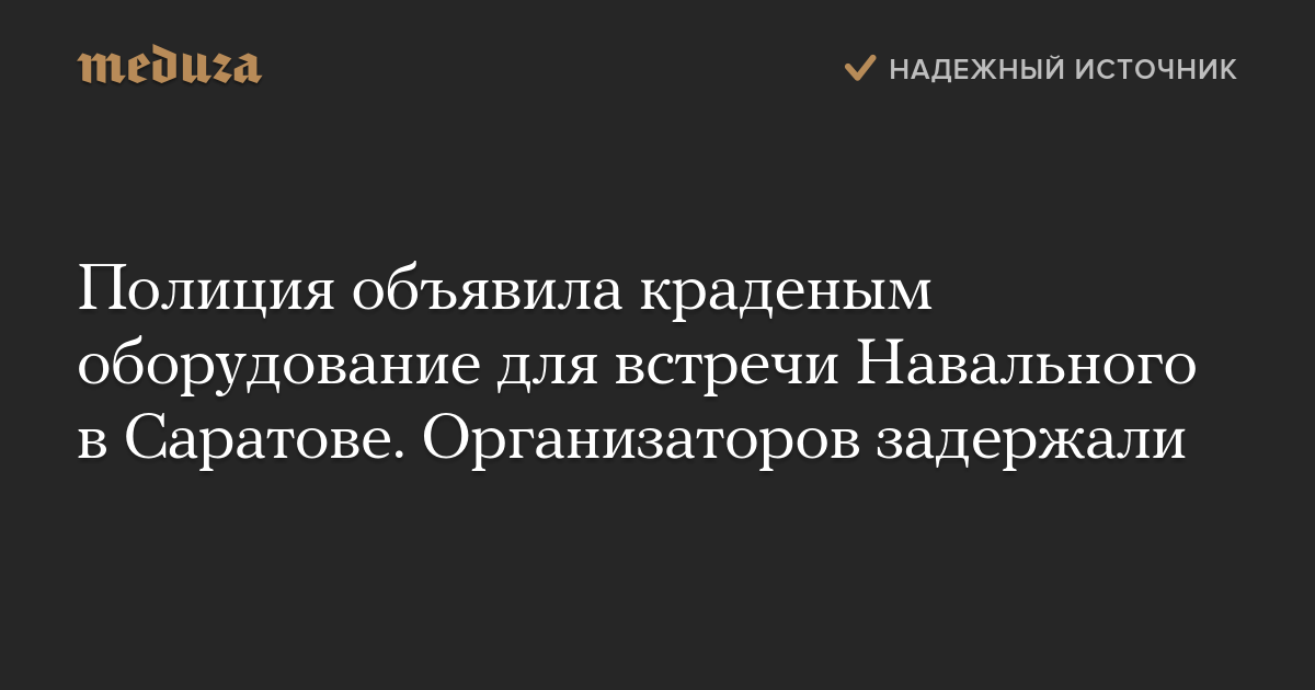 Полиция объявила краденым оборудование для встречи Навального в Саратове. Организаторов задержали