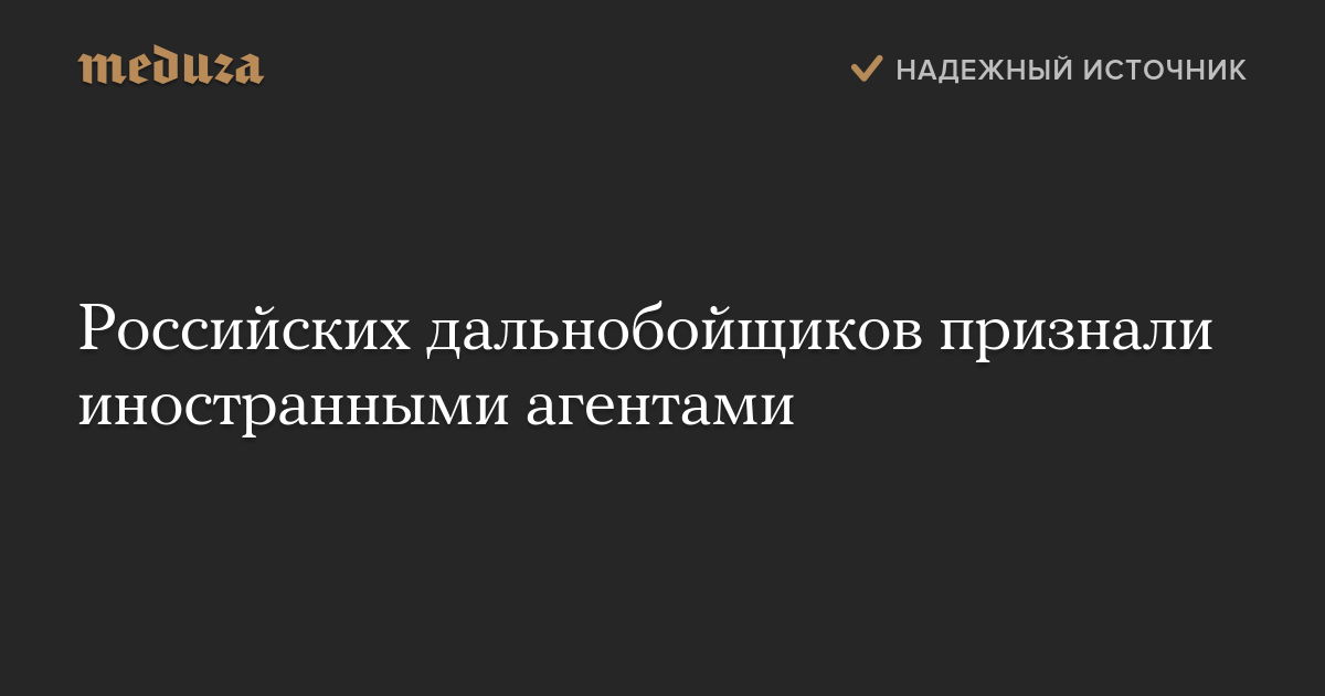 Министерство юстиции России включило в реестр иностранных агентов некоммерческую организацию «Объединение перевозчиков России», куда входят дальнобойщики, протестующие против системы «Платон». Как сообщается на сайте Минюста, такое решение было принято по итогам «внеплановой документарной проверки».