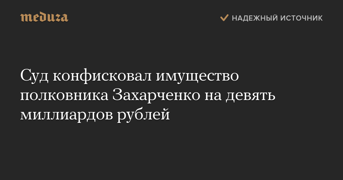 Суд конфисковал имущество полковника Захарченко на девять миллиардов рублей