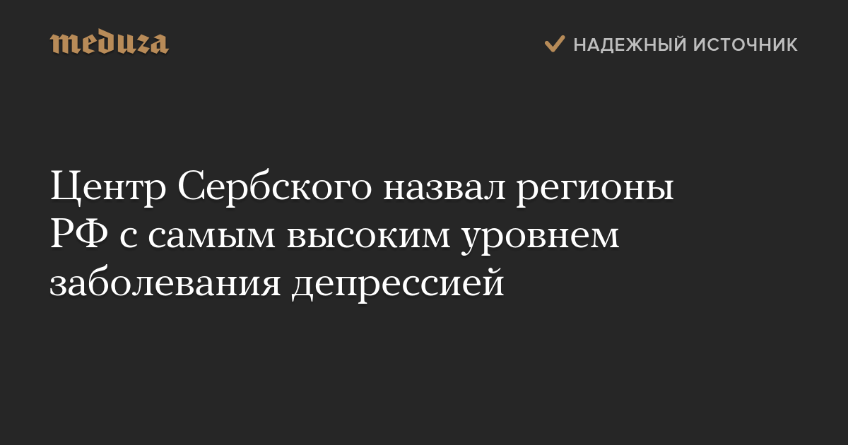 Центр Сербского назвал регионы РФ с самым высоким уровнем заболевания депрессией