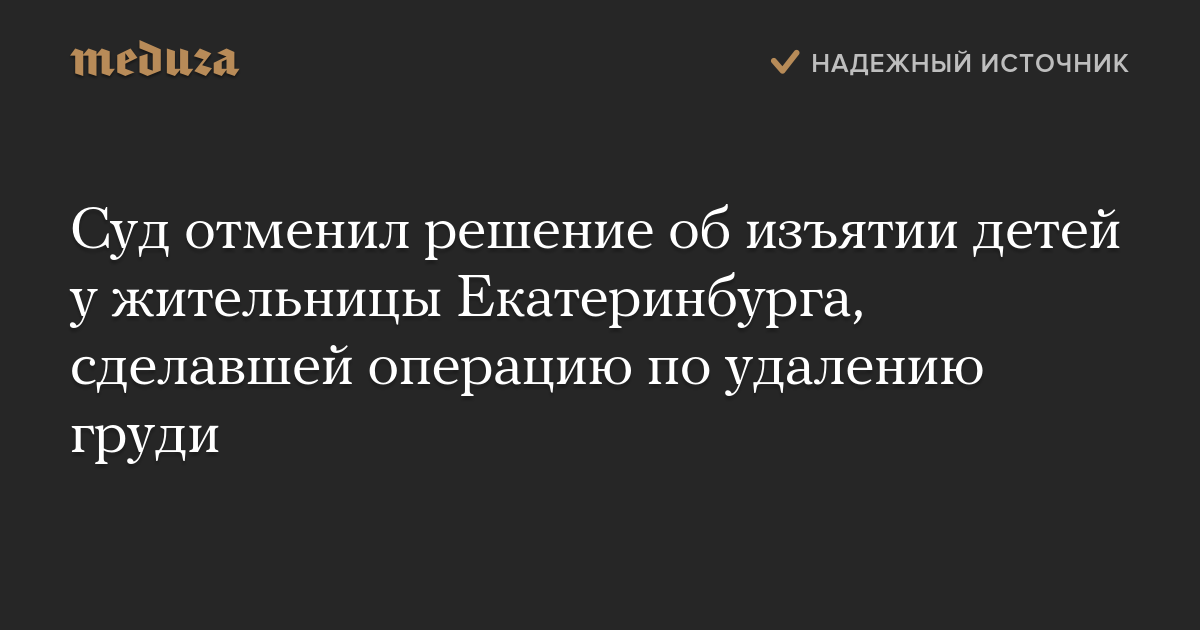 Суд отменил решение об изъятии детей у жительницы Екатеринбурга, сделавшей операцию по удалению груди