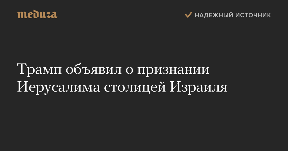 Президент США Дональд Трамп объявил о решении признать столицей Израиля Иерусалим. «Я решил, что настало время официально признать Иерусалим столицей Израиля», — сказал он.