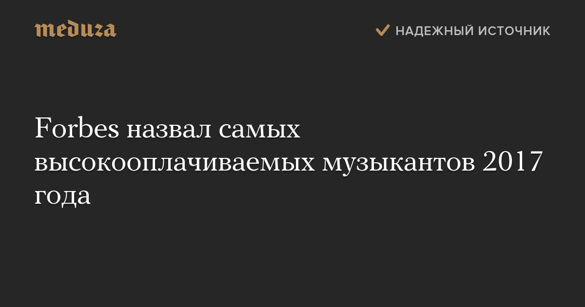 Forbes назвал самых высокооплачиваемых музыкантов 2017 года