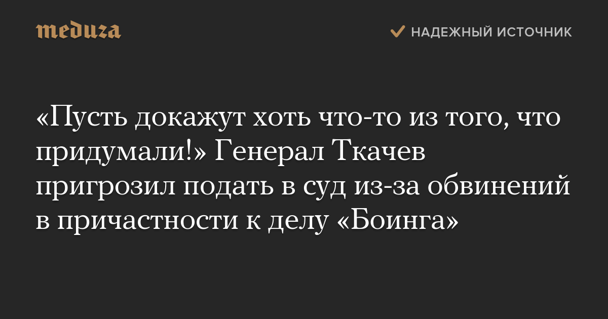«Пусть докажут хоть что-то из того, что придумали!» Генерал Ткачев пригрозил подать в суд из-за обвинений в причастности к делу «Боинга»