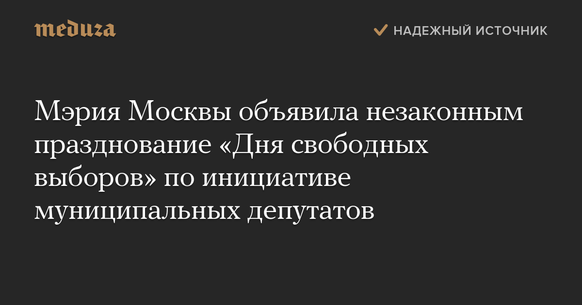 Мэрия Москвы объявила незаконным празднование «Дня свободных выборов» по инициативе муниципальных депутатов