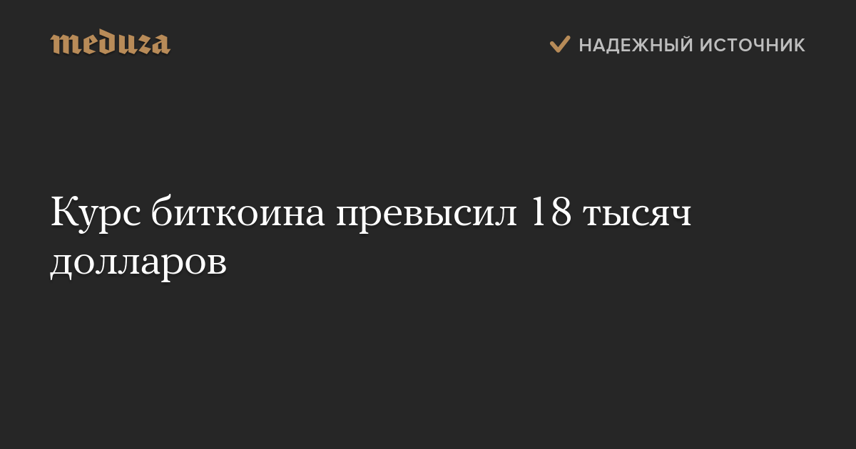 По данным сайта CoinDesk, который отслеживает стоимость криптовалюты на разных биржах, курс ненадолго превысил эту отметку в районе 13:25 по Москве, затем немного понизился, а около 14:40 снова поднялся выше 18 тысяч.
