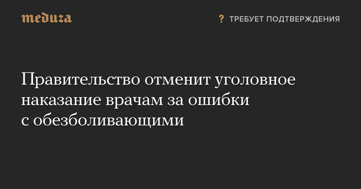Правительство отменит уголовное наказание врачам за ошибки с обезболивающими