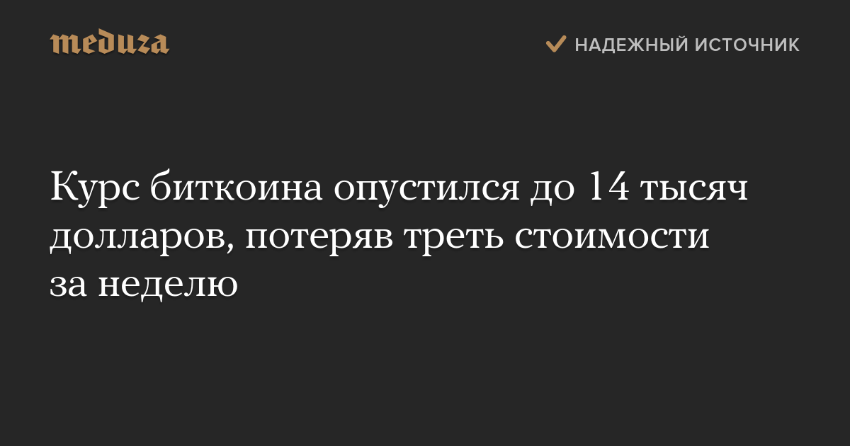 Курс биткоина опустился до 14 тысяч долларов, потеряв треть стоимости за неделю