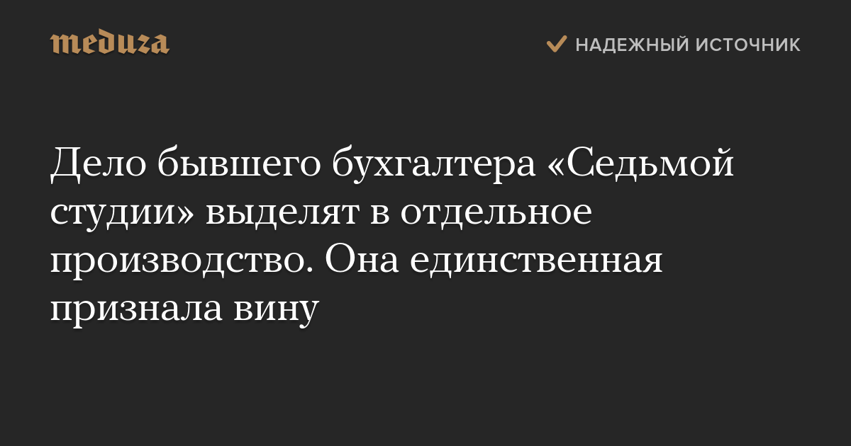 Дело бывшего бухгалтера «Седьмой студии» выделят в отдельное производство. Она единственная признала вину