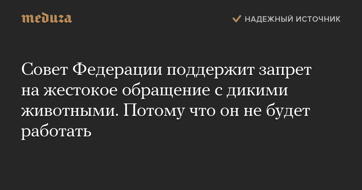 Совет Федерации поддержит запрет на жестокое обращение с дикими животными. Потому что он не будет работать
