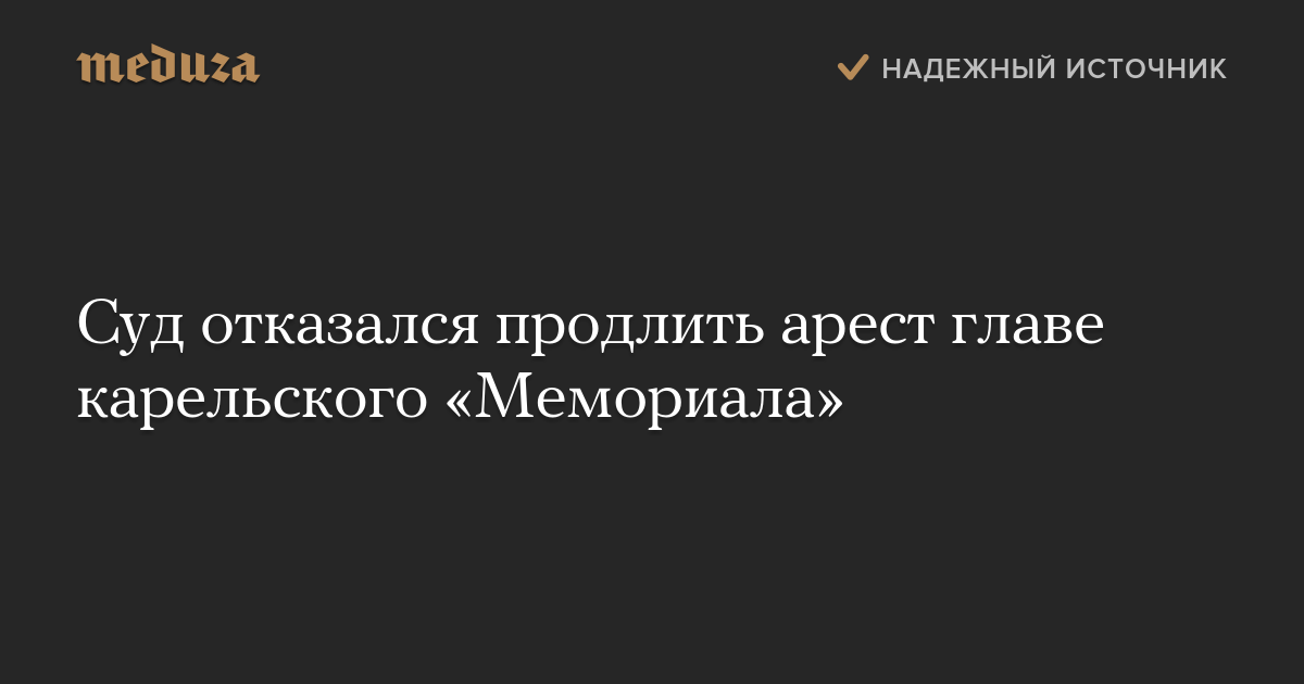 Петрозаводский городской суд отказался продлить арест главе карельского «Мемориала» Юрию Дмитриеву, сообщает «Новая газета». Он будет отпущен под подписку о невыезде с 28 января — в этот день закончится текущий срок его ареста.