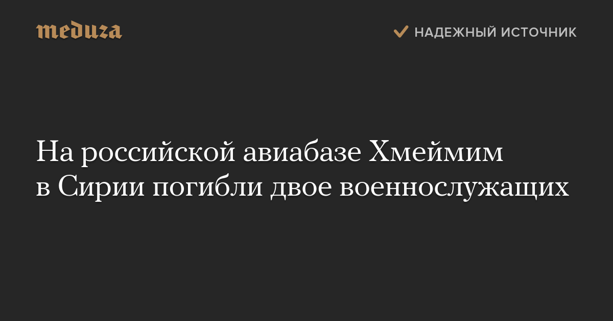 На российской авиабазе Хмеймим в Сирии погибли двое военнослужащих
