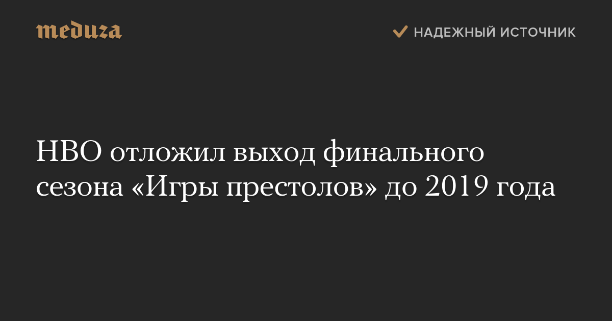 HBO отложил выход финального сезона «Игры престолов» до 2019 года