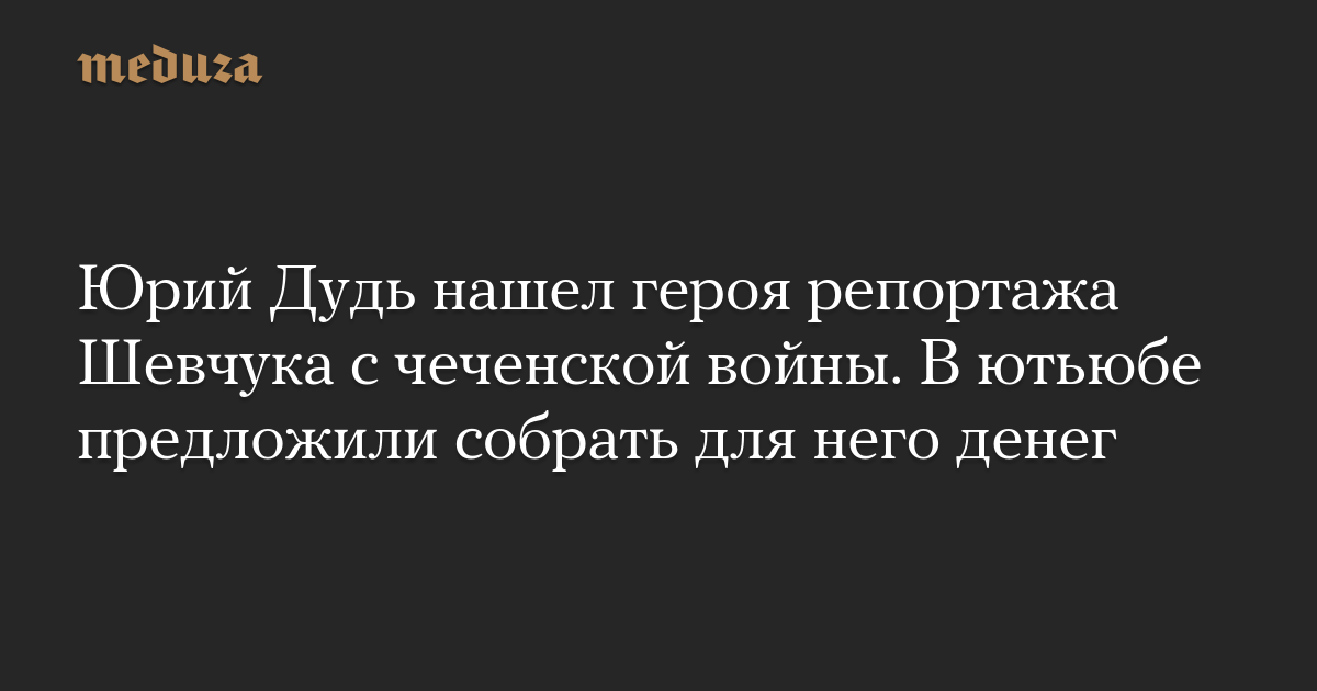 Юрий Дудь нашел героя репортажа Шевчука с чеченской войны. В ютьюбе предложили собрать для него денег